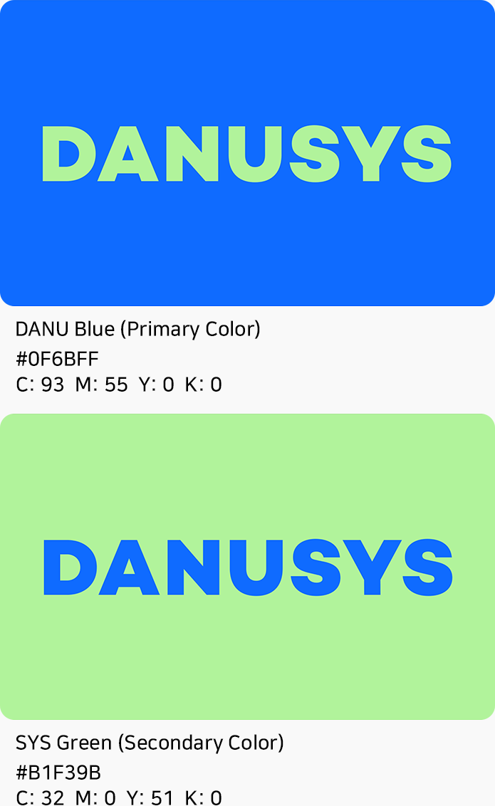 다누시스의 핵심 색상은 'DANU Blue'입니다. 인쇄, 출판 시 Core color로 활용됩니다.