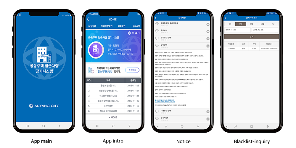 By linking the parking management system installed in the apartment complex with the vehicle number inquiry system installed in the integrated control center, it is possible to block the entry of problematic vehicles such as stalker vehicles and wanted vehicles, and to manage unauthorized vehicles to create a safe environment in the apartment complex.