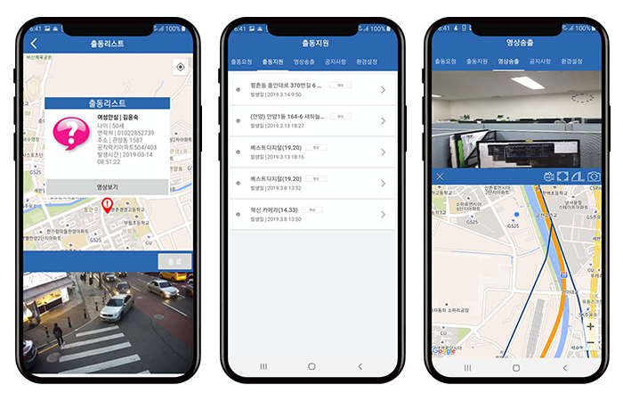 평상시 전자지도(GIS) 상에 순찰차량의 이동정보를 실시간으로 표출하고, 상황발생 시에는 사고 현장에서 가장 인접한 차량에 사고 현장 CCTV 영상을 전송하여 신속한 대응 및 조기 검거 실현에 중요한 서비스입니다.