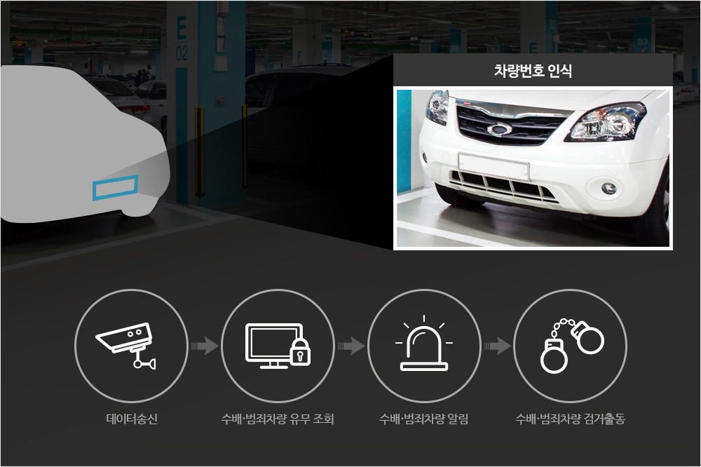 아파트 단지 내 출입하는 모든 차량을 경찰청이 보유하고 있는 도난, 수배, 범죄차량 DB와 실시간으로 비교하고, 이 결과를 알려줌으로써 어린이, 부녀자 납치 등을 사전에 봉쇄할 수 있는 서비스